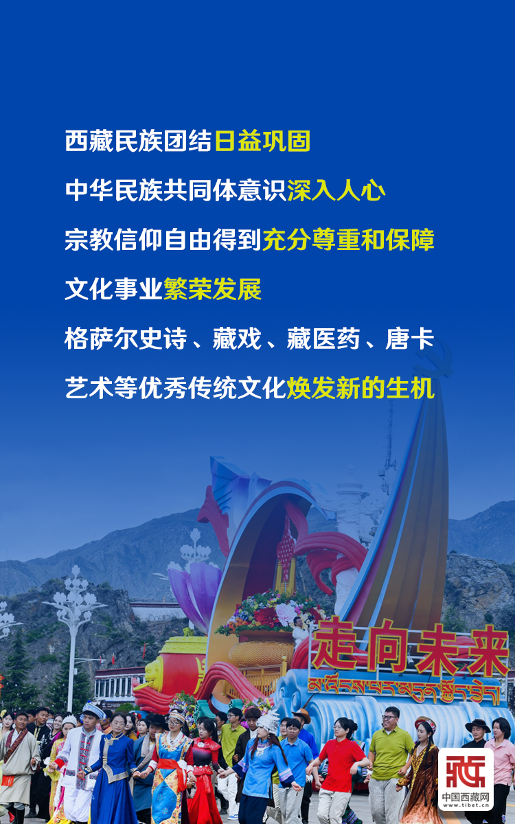 60年來,西藏經(jīng)濟社會全面發(fā)展,各族人民生活蒸蒸日上,生態(tài)文明建設成效顯著,民族團結日益鞏固,中華民族共同體意識深入人心,宗教信仰自由得到充分尊重和保障,文化事業(yè)繁榮發(fā)展。(中國西藏網(wǎng) 記者/王淑 馮重霖 邊子捷 趙振宇 德吉卓瑪 次旦拉姆 旦曲 賈華加 趙釗 姚浩然 劉莉 楊眉笑 海報制作/趙佳)