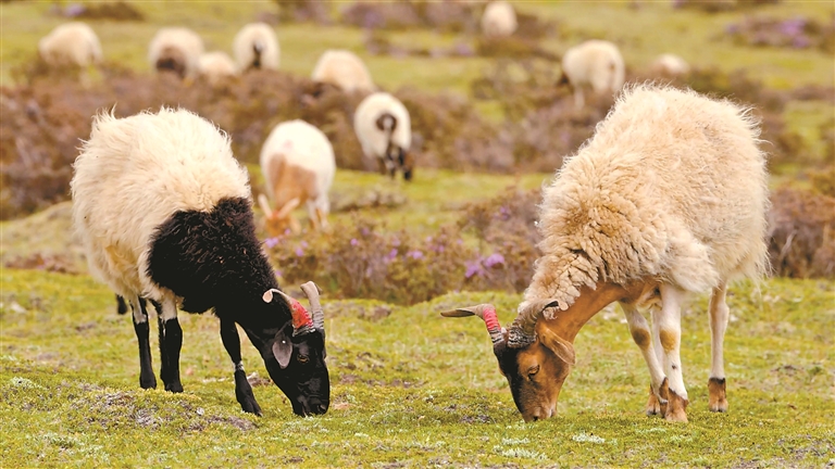 “咩咩咩……”貢覺縣阿旺鄉(xiāng)綿羊養(yǎng)殖基地內(nèi),膘肥體壯的阿旺綿羊或悠然踱步,或低頭吃草,處處洋溢著生機(jī)。