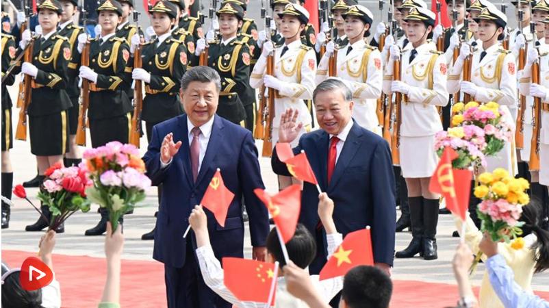 雙方要同心協(xié)力,攜手同行現(xiàn)代化道路。要加快發(fā)展戰(zhàn)略對(duì)接,優(yōu)先推進(jìn)基礎(chǔ)設(shè)施互聯(lián)互通。要加強(qiáng)人工智能、半導(dǎo)體、物聯(lián)網(wǎng)等新興領(lǐng)域合作。中方歡迎更多越南優(yōu)質(zhì)產(chǎn)品進(jìn)入中國(guó)市場(chǎng)。雙方要繼續(xù)加強(qiáng)旅游、文化、媒體、教育、衛(wèi)生、體育等友好交流合作,促進(jìn)兩國(guó)人民相知相親。我愿同你一道宣布啟動(dòng)2026-2027年“中越旅游合作年”。
