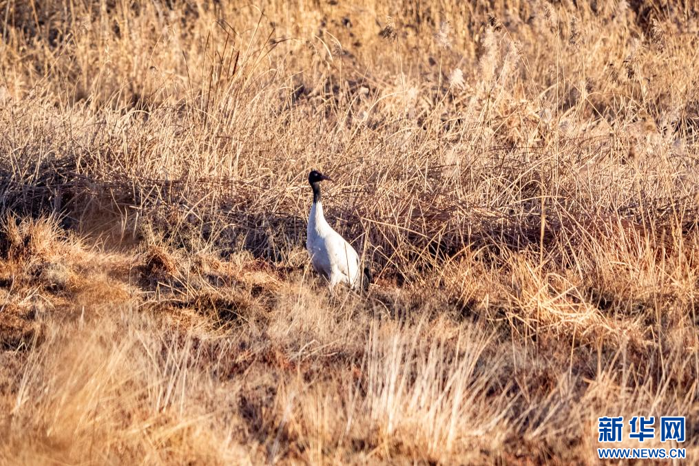 1月10日,在拉薩市拉魯濕地拍攝的黑頸鶴。新華網(wǎng) 旦增努布 攝