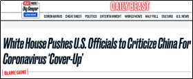 ▲美國《野獸日報(bào)》報(bào)道截圖,題為《白宮推動(dòng)官員批評中國掩蓋新冠肺炎疫情》