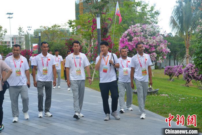 11月25日,海南三亞,第十二屆全國(guó)少數(shù)民族傳統(tǒng)體育運(yùn)動(dòng)會(huì)參賽代表團(tuán)在三角梅科博園參觀考察。張?jiān)潞?攝