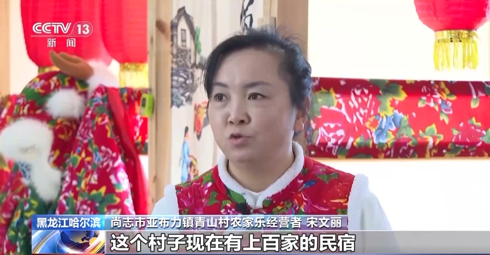 尚志市亞布力鎮(zhèn)青山村農(nóng)家樂(lè)經(jīng)營(yíng)者 宋文麗:這個(gè)村子現(xiàn)在有上百家民宿,尤其從去年開(kāi)始到今年,有很多老百姓原先自己住的房子,都改成民宿了。原先都是靠種地等等來(lái)維持生活,但是現(xiàn)在都做民宿、餐飲了,干啥都有了,比原先還賺錢(qián)了。