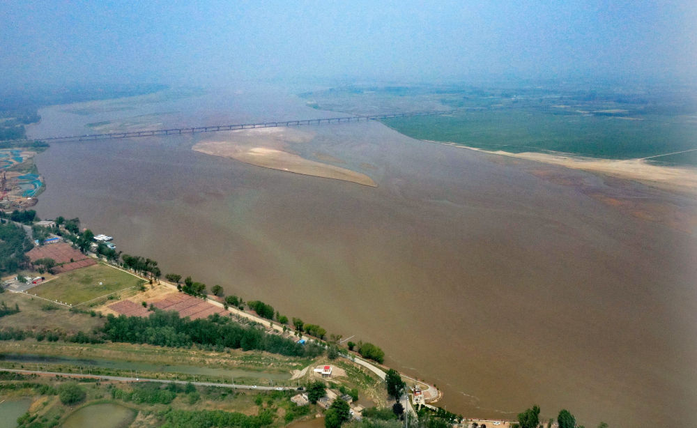 2025年4月27日拍攝的黃河鄭州段(無人機(jī)照片)。新華社記者 李嘉南 攝