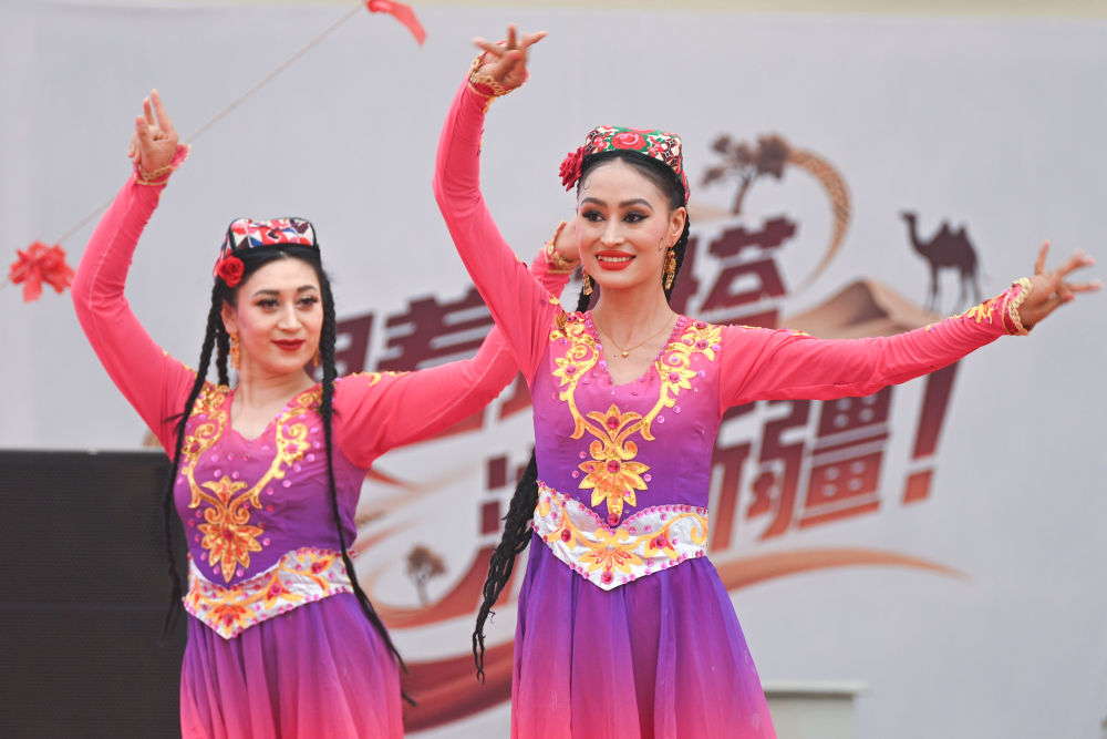 2025年5月28日,演員在2025中國環(huán)塔國際拉力賽新疆喀什地區(qū)葉城縣賽段迎賓晚會(huì)上表演。新華社記者 辛悅衛(wèi) 攝
