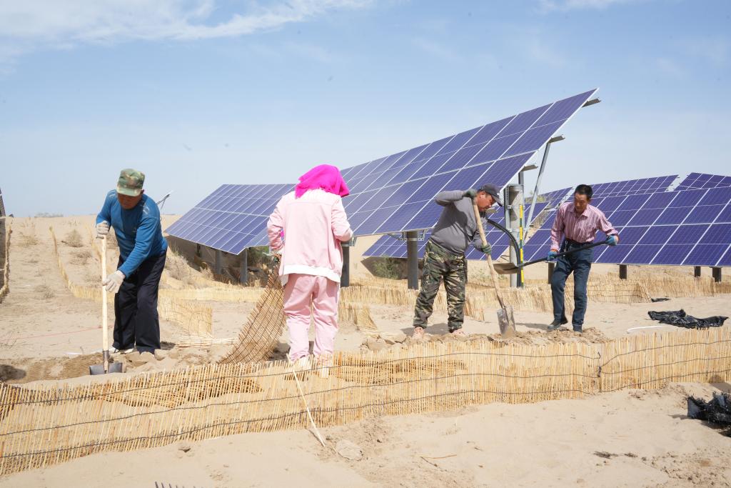 據(jù)介紹,該項目預計于6月底具備并網(wǎng)發(fā)電條件,投產(chǎn)運行后年發(fā)電量達3.6億千瓦時,配套治理沙地2.4萬畝。新華林場場長賀鑫說:“在開展‘三北’工程攻堅戰(zhàn)以來,我們采取‘以工代賑’形式,組織周邊村民參與光伏項目建設、林草種植等全流程作業(yè),參與農民的人數(shù)超過2000人?!?/p>