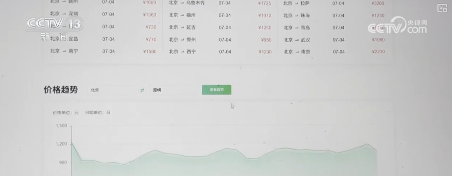 目前,昆明、烏魯木齊、西安等長線目的地的暑期機票價格已開始小幅上漲。記者查詢發(fā)現,以北京—昆明機票為例,7月上旬價格在千元左右,7月中旬開始至8月中旬,價格小幅上漲,均價在1200元到1500元之間。