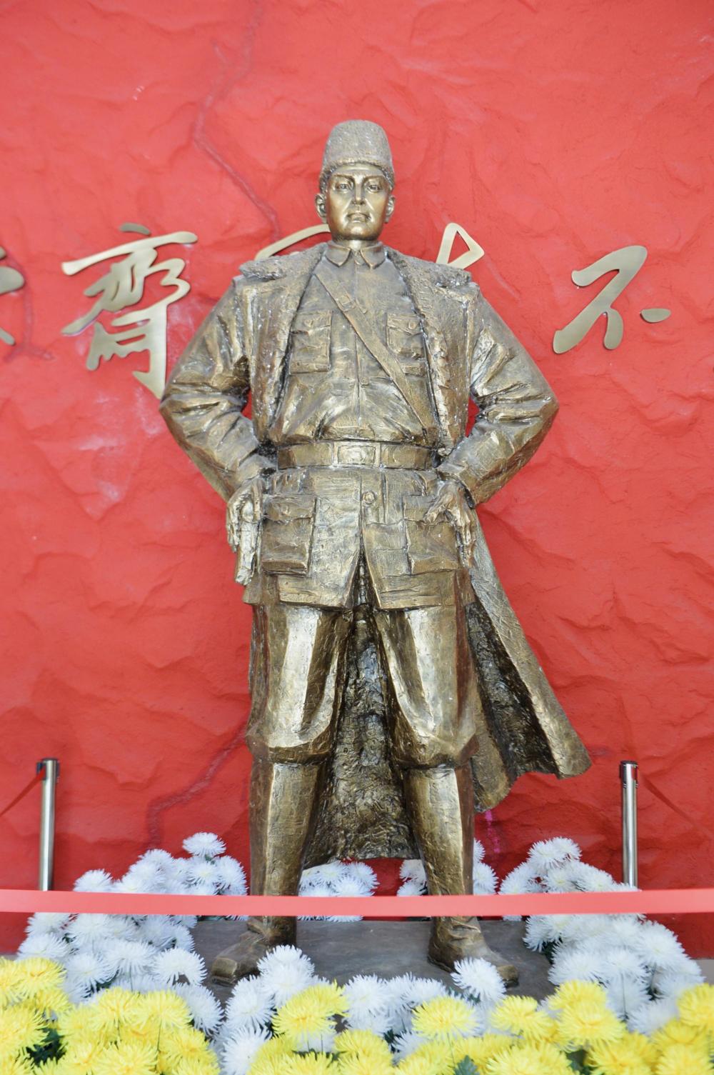 這是7月10日在山東省聊城市莘縣馬本齋烈士陵園拍攝的馬本齋烈士雕像。 新華社記者 崔博文 攝