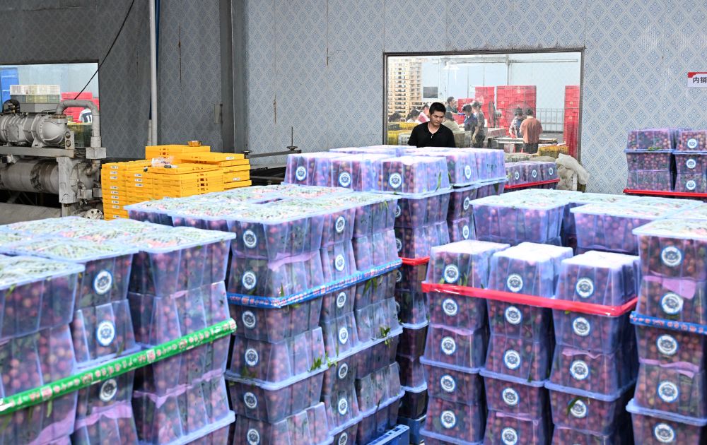 這是6月4日在廣東茂名高州市廣東銘景農(nóng)業(yè)發(fā)展有限公司車間內(nèi)拍攝的打包好的出口荔枝。新華社記者 鄧華 攝