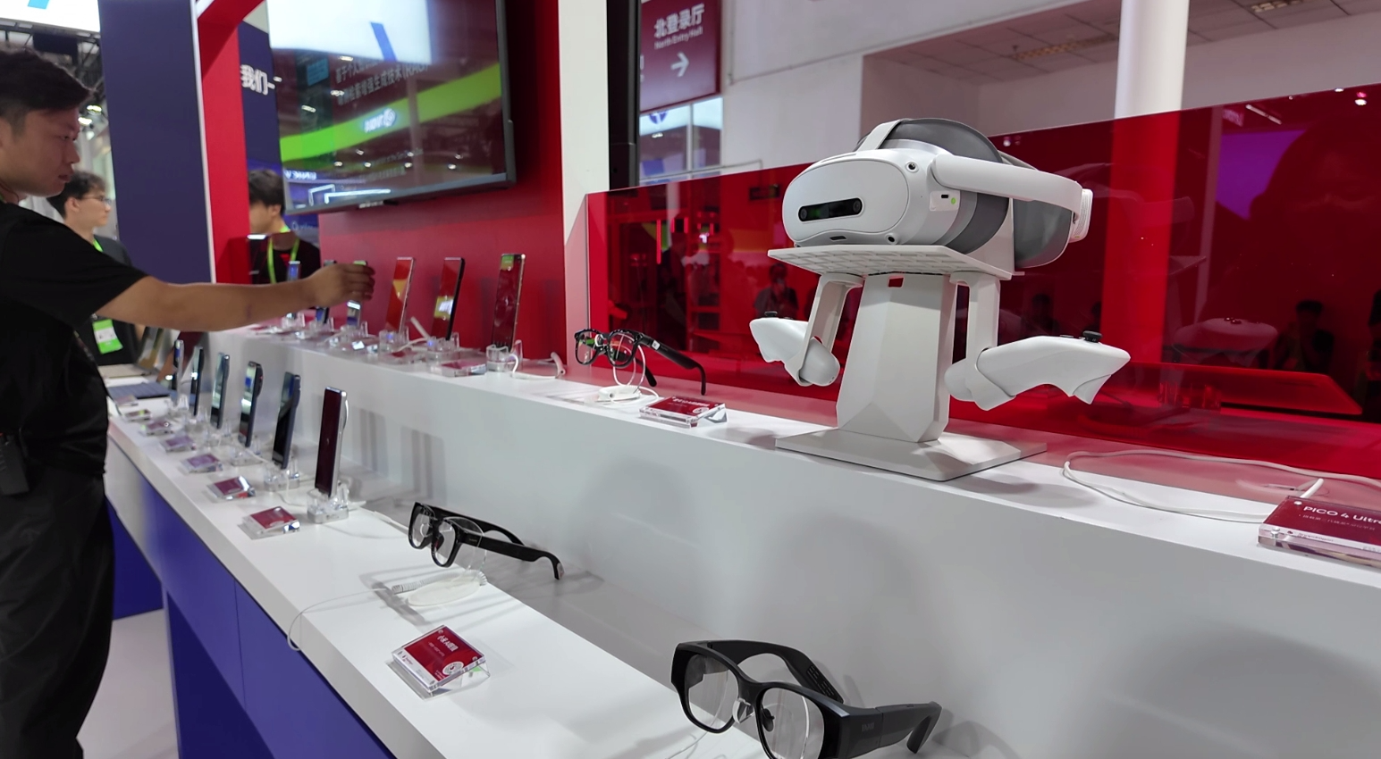 在第三屆鏈博會上,高通公司展示的AI眼鏡等智能終端產(chǎn)品。(央廣財經(jīng)記者黃昂瑾 攝)
