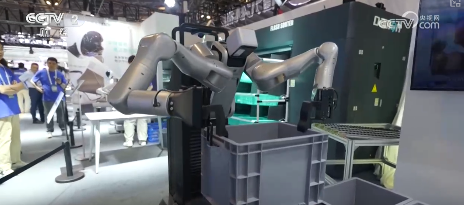 記者在人工智能大會現(xiàn)場觀察到,2025年,人形機器人已經(jīng)正式從展覽展示變?yōu)樯逃寐涞亍,F(xiàn)場展示的多款機器人都已經(jīng)在產(chǎn)線投入使用,機器人快速演進的背后是大量的數(shù)據(jù)采集和訓練。