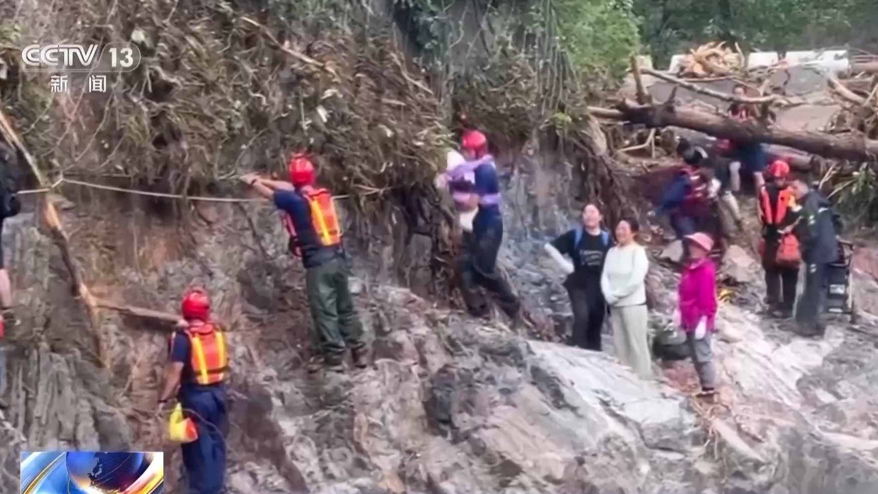 渡過斷橋還有斷路,這段路需要攀崖壁而行,隊(duì)員們拉起繩索,有自主行動能力的被困群眾,緊抓繩索,小心沿懸崖邊緣艱難通行;對于行動不便的老人、兒童和傷員,救援人員將他們一個個背負(fù)過險段。