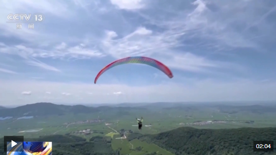 進(jìn)入暑期,吉林長春雙陽區(qū)太平鎮(zhèn)一面山村的航空飛行營地迎來客流高峰,不少游客體驗(yàn)著空中翱翔的樂趣與刺激。