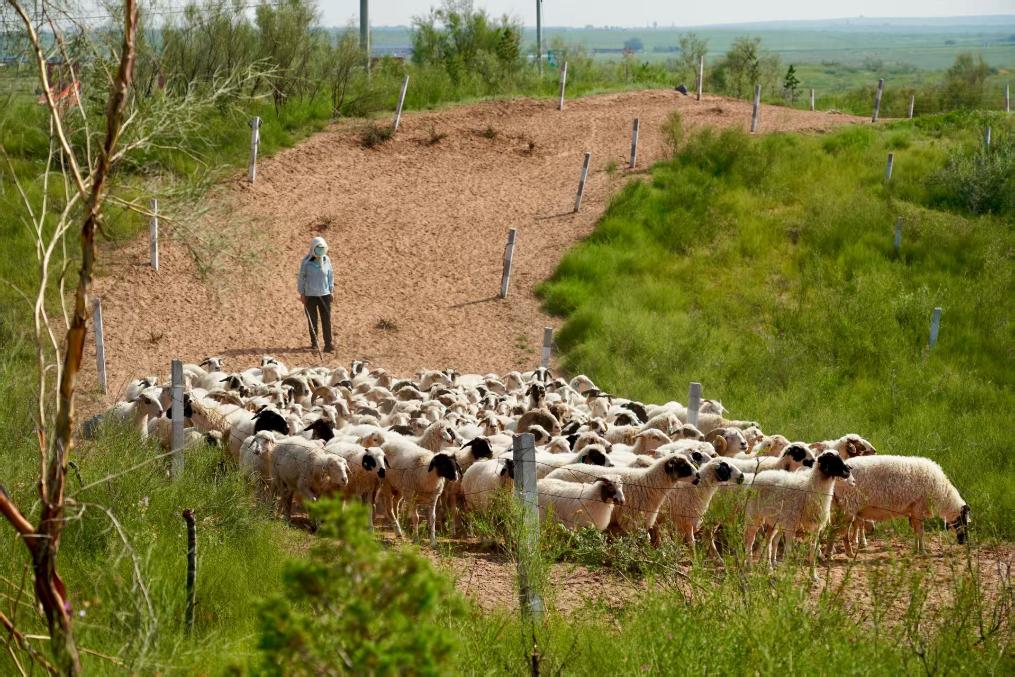 鹽池縣灘羊生態(tài)牧場養(yǎng)殖的灘羊。新華社記者張瀚暘 攝
