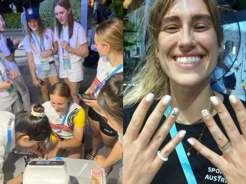 美甲機(jī)器人5秒噴繪出的世運(yùn)會(huì)會(huì)徽與熊貓紋樣,引得國外運(yùn)動(dòng)員前來體驗(yàn)。成都世運(yùn)會(huì)執(zhí)委會(huì)供圖