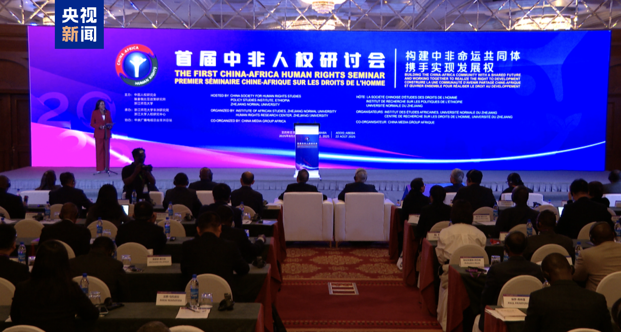 當(dāng)?shù)貢r間8月22日,首屆中非人權(quán)研討會在埃塞俄比亞首都亞的斯亞貝巴召開,來自中國和非洲44個國家的200余名代表,圍繞“構(gòu)建中非命運共同體,攜手實現(xiàn)發(fā)展權(quán)”展開熱烈討論,達(dá)成并發(fā)布《中非發(fā)展權(quán)亞的斯亞貝巴共識》。