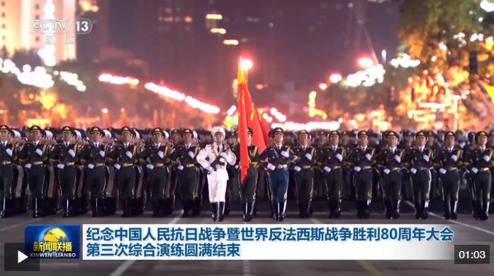 記者從中國人民抗日戰(zhàn)爭暨世界反法西斯戰(zhàn)爭勝利80周年紀(jì)念活動(dòng)新聞中心獲悉,8月23日17時(shí)至8月24日5時(shí),北京天安門地區(qū)舉行了紀(jì)念中國人民抗日戰(zhàn)爭暨世界反法西斯戰(zhàn)爭勝利80周年大會第三次綜合演練。據(jù)介紹,這是一次全流程、全要素預(yù)演,也是紀(jì)念大會最后一次綜合演練,包括紀(jì)念大會儀式(含閱兵)、轉(zhuǎn)場、觀眾組織及應(yīng)急處置等各項(xiàng)內(nèi)容,重點(diǎn)檢驗(yàn)了各流程、各環(huán)節(jié)的銜接配合,為正式活動(dòng)的成功舉辦打下堅(jiān)實(shí)基礎(chǔ)。