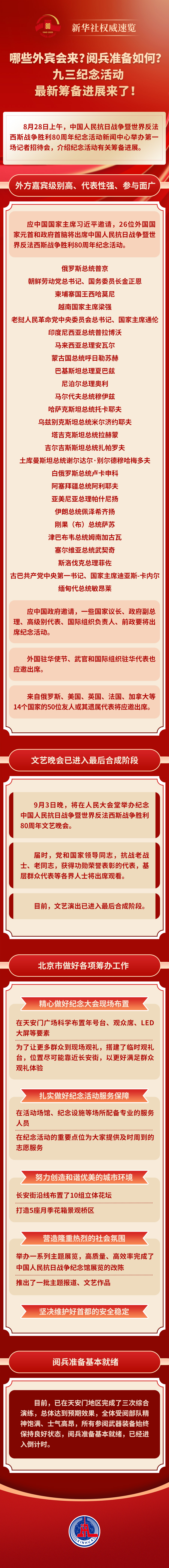 新華社權(quán)威速覽丨哪些外賓會來?閱兵準(zhǔn)備如何?九三紀(jì)念活動最新籌備進(jìn)展來了!