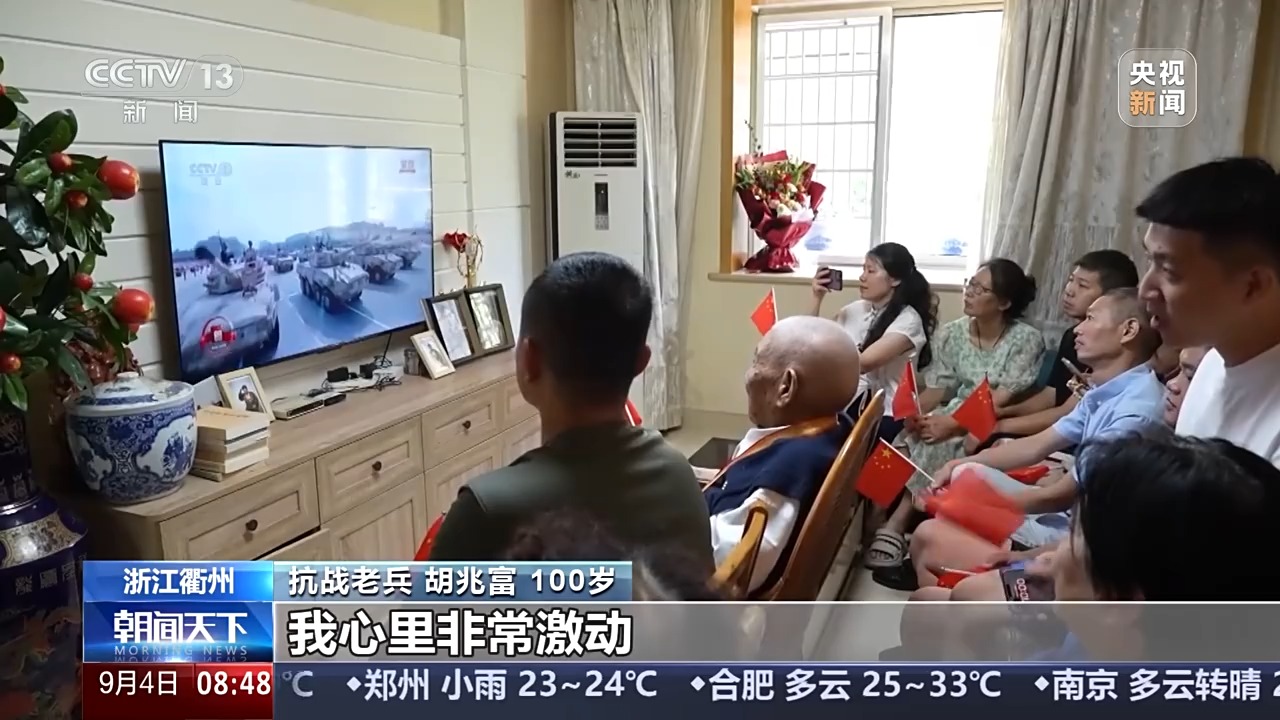 抗戰(zhàn)老兵 胡兆富:現(xiàn)在的中國(guó)是強(qiáng)大,看了閱兵以后我心里非常激動(dòng),中國(guó)人民站起來(lái)了,富起來(lái)了,強(qiáng)起來(lái)了。