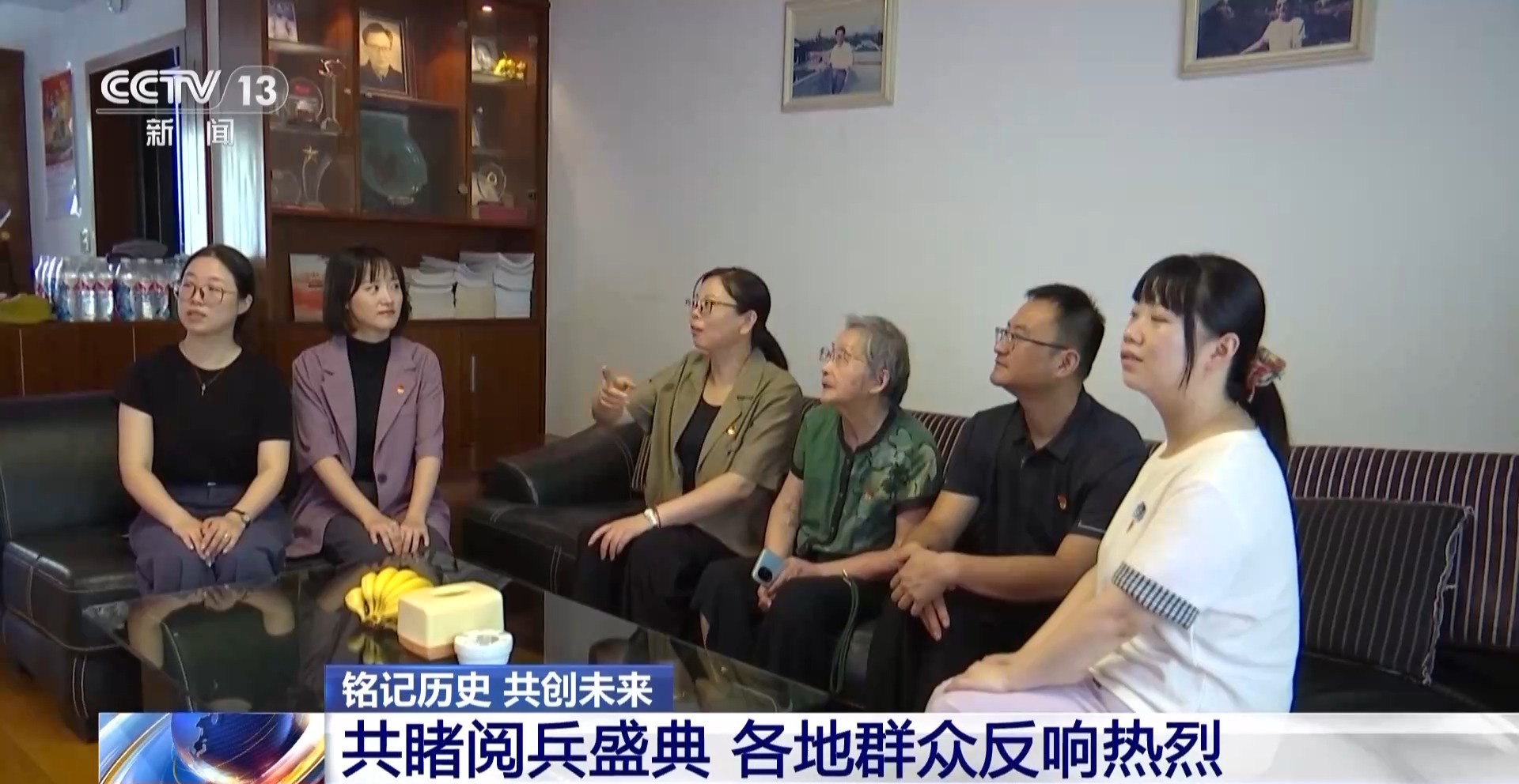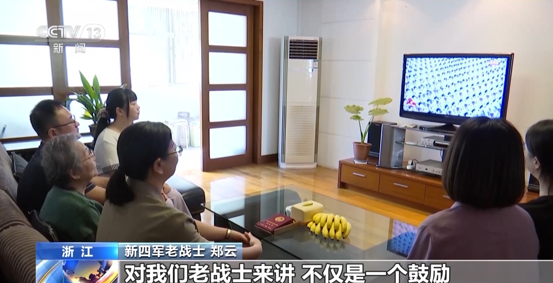 在浙江湖州93歲新四軍老戰(zhàn)士鄭云的家中,社區(qū)工作人員與鄭云老人一起收看大會(huì)直播,鄭云曾先后參加過抗日戰(zhàn)爭(zhēng)、解放戰(zhàn)爭(zhēng),看完此次閱兵,她感觸頗深。