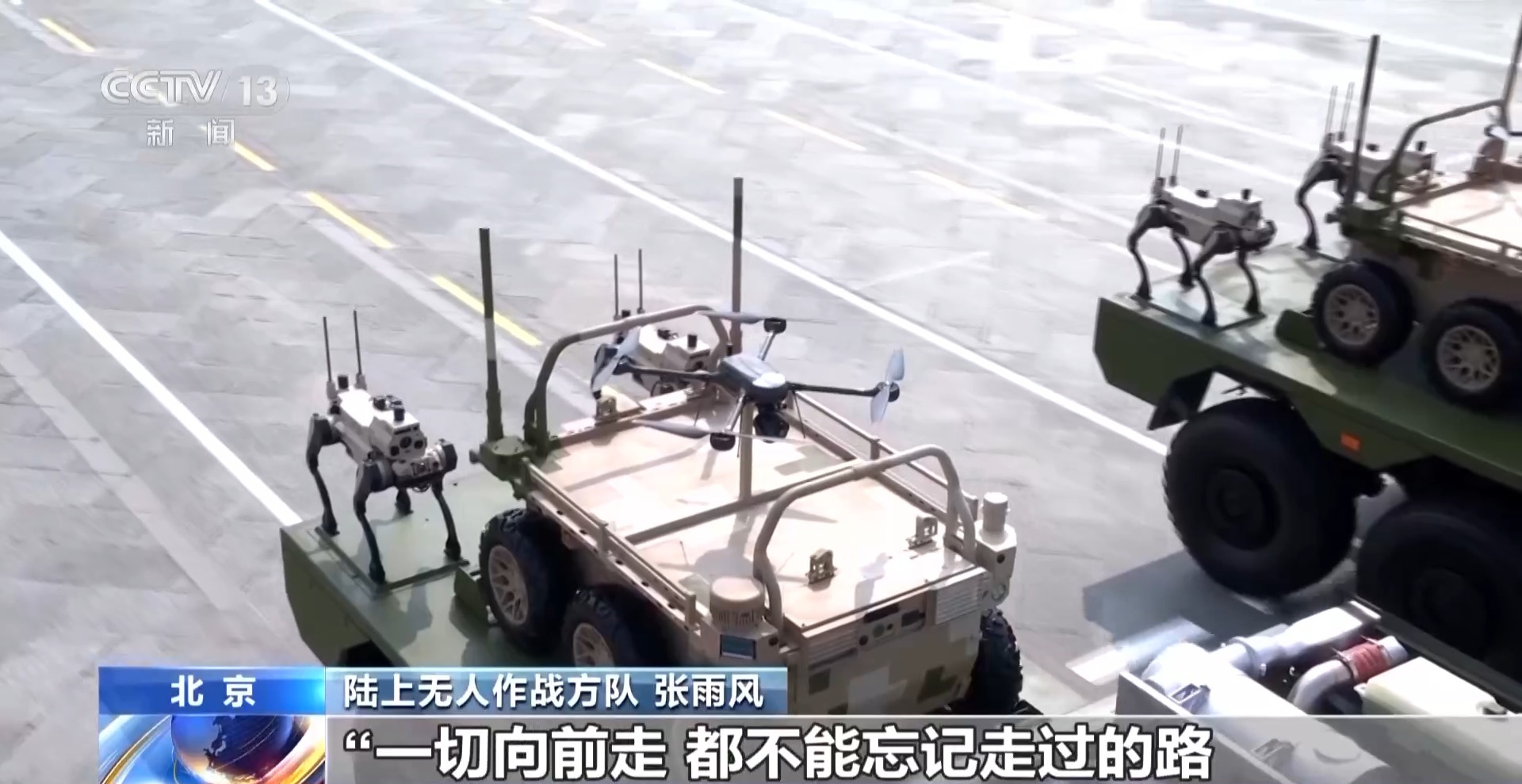 陸上無人作戰(zhàn)方隊 張雨風(fēng):如今,我們擁有了先進(jìn)的武器裝備,更要牢記中華民族一路走來的艱辛,牢記人民軍隊使命初心,弘揚好抗戰(zhàn)偉大精神,把手中先進(jìn)武器裝備轉(zhuǎn)化為部隊實際作戰(zhàn)能力,聚力打贏實現(xiàn)建軍一百年奮斗目標(biāo)攻堅戰(zhàn)。