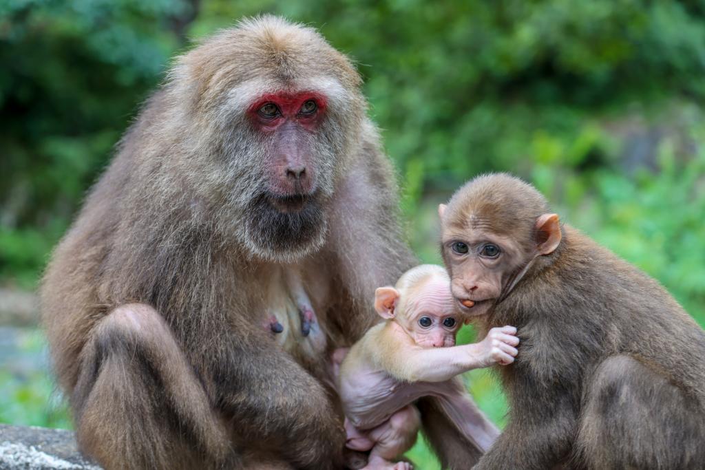 7月22日,藏酋猴在武夷山國(guó)家公園腹地桐木村嬉戲。新華社發(fā)(邱汝泉攝)