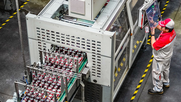 “從空罐上線到清洗、罐裝、包裝、碼垛,全部都自動化實現(xiàn)?!敝屑Z可口可樂飲料(貴州)有限公司生產(chǎn)技術(shù)部兼安全質(zhì)量環(huán)保部總監(jiān)周林林介紹,公司的自動化易拉罐裝飲料生產(chǎn)線每小時可灌裝飲料24000罐,“未來還要不斷升級”。