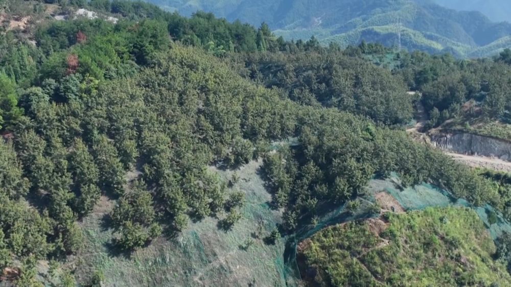 近年來(lái),臨安區(qū)大力推廣張網(wǎng)采收,在昌化鎮(zhèn)白牛村西谷坪經(jīng)濟(jì)林林場(chǎng),一張張綠色的網(wǎng)像地毯一樣鋪滿山頭。