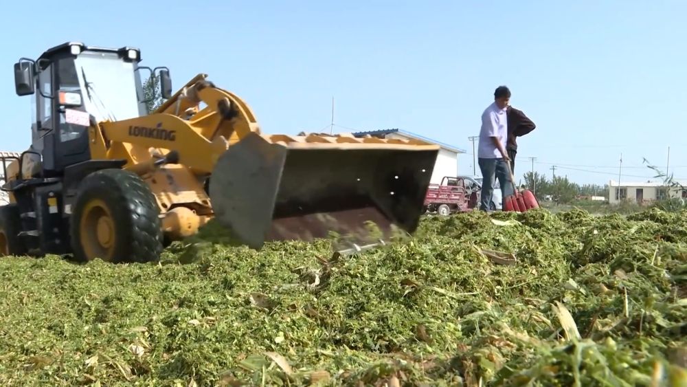 新疆巴音郭楞蒙古自治州焉耆縣的1.5萬(wàn)畝青貯玉米迎來(lái)豐收。在永寧鎮(zhèn)九號(hào)渠村,大型青貯收割加工機(jī)將一株株玉米從根部割斷,粉碎后拋入集草車(chē)。