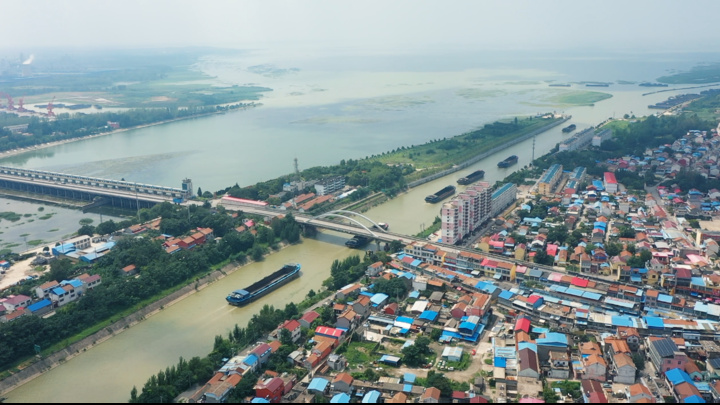 站在山東省濟寧市微山縣韓莊鎮(zhèn)的韓莊運河橋上遠眺,一側(cè)是水天相接、煙波浩渺的微山湖,另一側(cè)是奔流千年、一路東去的大運河。