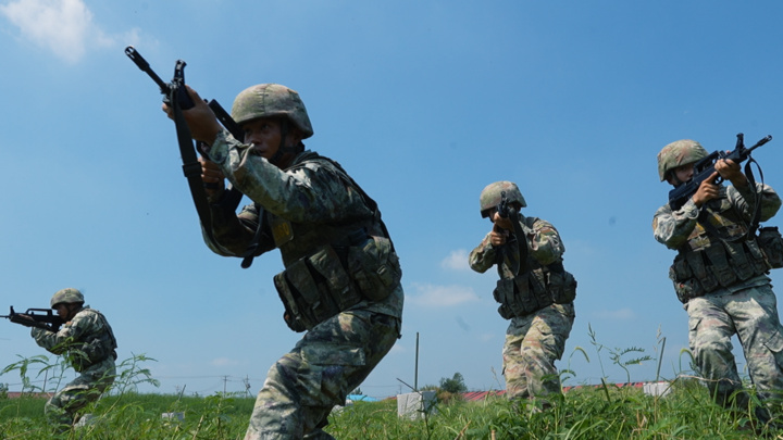 烈日灼人,汗水混雜著泥土粘在作訓服上。但戰(zhàn)士們一絲不茍,目光如炬,動作凌厲,搜索、突擊、越障、匍匐……一舉一動彰顯著人民軍隊的凜然軍威與中國軍人的過硬本領(lǐng)。?