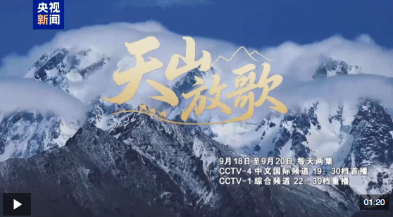 9月18日至20日,鎖定中文國(guó)際頻道(CCTV-4)、綜合頻道(CCTV-1),跟隨《天山放歌》走進(jìn)天山南北,感受新疆蓬勃發(fā)展的時(shí)代新篇。