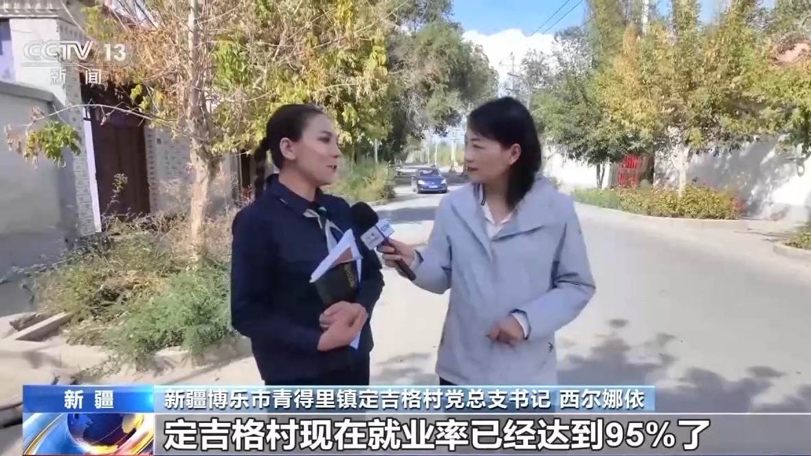 新疆博樂市青得里鎮(zhèn)定吉格村黨總支書記 西爾娜依:定吉格村現在就業(yè)率已經達到95%了,相當于每個人都有活干,每個人都有錢掙。