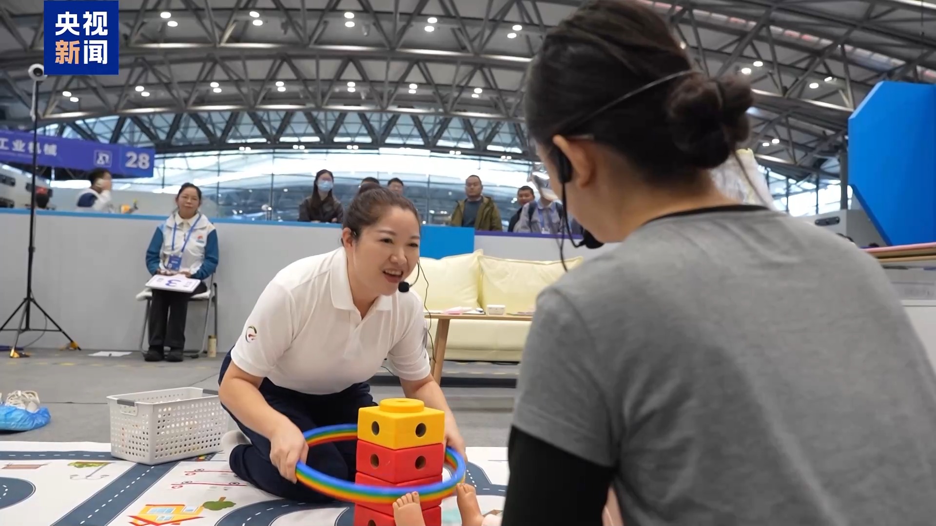 賽場(chǎng)上,一個(gè)個(gè)格子間按照真實(shí)居家場(chǎng)景布置,選手們按照流程,完成從上門(mén)拜訪(fǎng)、嬰兒互動(dòng)、游戲設(shè)計(jì)、家長(zhǎng)交流等系列服務(wù)工作。記者注意到,這次比賽創(chuàng)新引入會(huì)哭鬧的智能化模擬嬰兒,選手抱姿不對(duì)、饑餓都會(huì)有數(shù)據(jù)反饋,考驗(yàn)選手的回應(yīng)性照顧能力,同時(shí)邀請(qǐng)了一些嬰幼兒家長(zhǎng)進(jìn)行配合互動(dòng)。