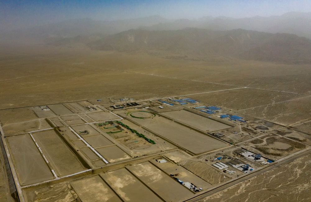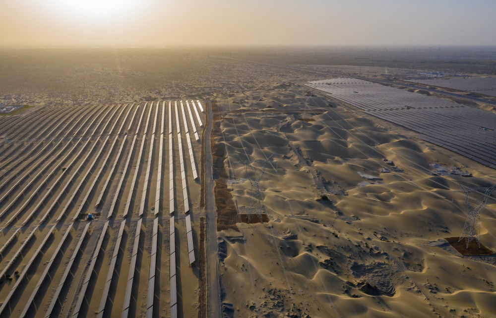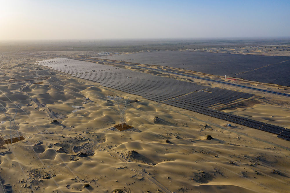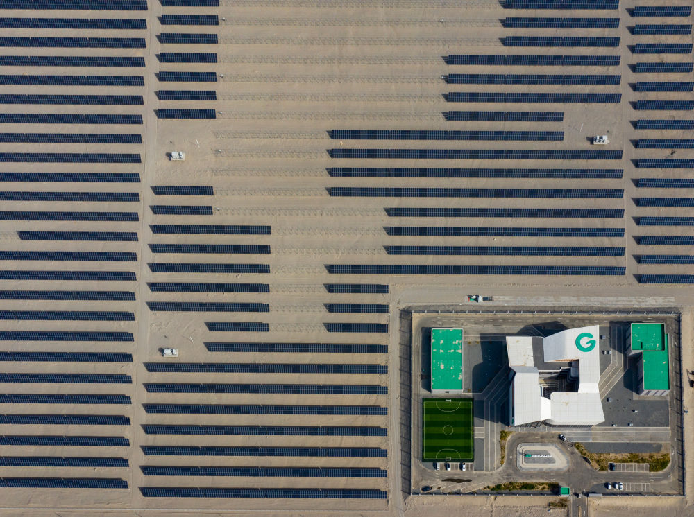 9月22日在新疆巴音郭楞蒙古自治州若羌縣拍攝的中國(guó)綠發(fā)新疆中綠電若羌400萬(wàn)千瓦光伏項(xiàng)目(無人機(jī)照片)。該項(xiàng)目每年可發(fā)電69.08億千瓦時(shí),滿足南疆200萬(wàn)戶家庭用電需求,減排208.24萬(wàn)噸煤耗。