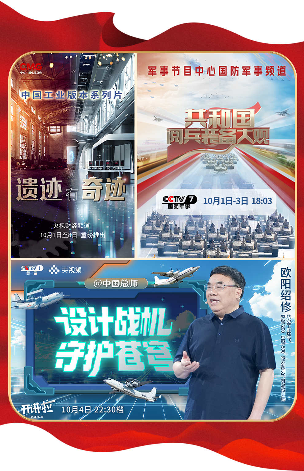 紀錄片《遺跡有奇跡》,深入探訪八個不同行業(yè)的工業(yè)遺址,展現中國工業(yè)發(fā)展的輝煌歷程。九三閱兵現場,新型察打一體無人機、空警-500預警機等硬核裝備令人振奮,《開講啦》“@中國總師”解讀中國軍工硬核實力,系列節(jié)目《共和國閱兵裝備大觀》帶你在鋼鐵洪流的轟鳴聲中見證軍工裝備的迭代升級,展示新時代中國科技創(chuàng)新帶來的大國力量!向前進,向前進,我們有信心、有底氣!