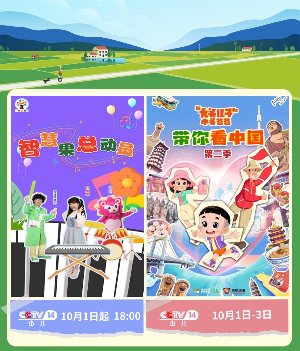 優(yōu)秀動畫,浸潤童心!《新大頭兒子和小頭爸爸——帶你看中國(第二季)》《智慧樹》“智慧果總動員”特別節(jié)目打造溫情時刻,陪伴假日親子時光。《山海傳奇》少年大禹將帶著小朋友們繼續(xù)勇闖“神話世界”。