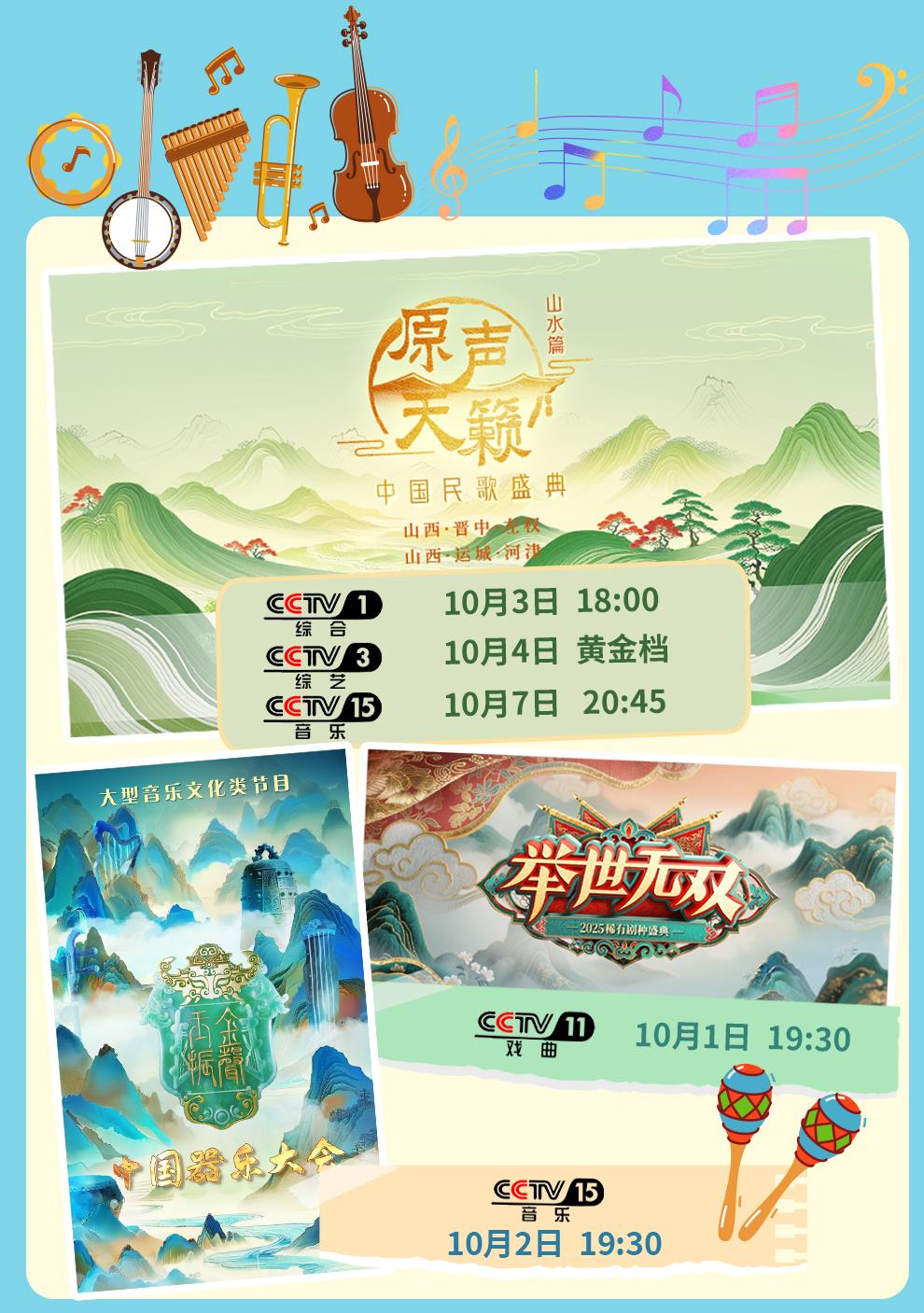 文藝節(jié)目,出新出彩!輕體量小鎮(zhèn)音樂會、稻田音樂會、河灘音樂會,《原聲天籟-中國民歌盛典》用民歌描繪山水間幸福畫卷。《金聲玉振——中國器樂大會》將賈湖骨笛、箜篌等古樂器與當代編曲結合,奇妙組合帶來全新聽覺體驗。《舉世無雙 2025稀有劇種盛典》匯集雁北耍孩兒、湖劇、阿宮腔等三十余個稀有劇種,盡展中華戲曲百花園獨特風采。