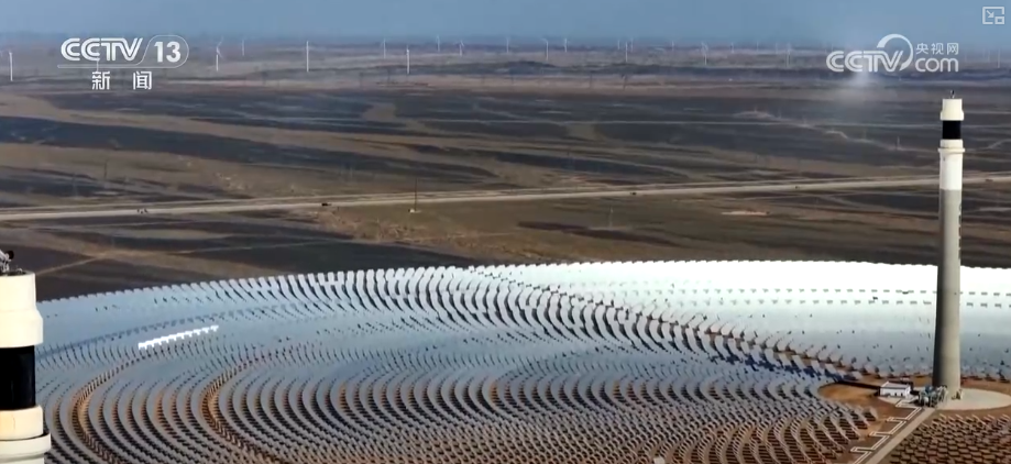 園區(qū)中,23000多面定日鏡如同一個(gè)個(gè)精準(zhǔn)的“追光者”,通過智能控制系統(tǒng)實(shí)時(shí)追蹤太陽軌跡,將分散的太陽光集中反射到高達(dá)200多米的吸熱器上,再通過大容量熔鹽儲(chǔ)熱系統(tǒng),實(shí)現(xiàn)24小時(shí)連續(xù)穩(wěn)定供電。