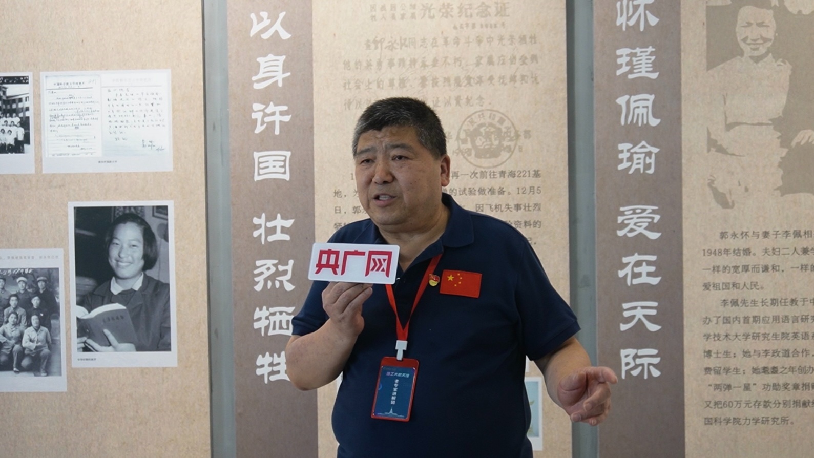 老專(zhuān)家志愿講解團(tuán)成員馮濤在講述“兩彈一星”功勛郭永懷事跡時(shí)動(dòng)情落淚(央廣網(wǎng)發(fā) 張文 攝)