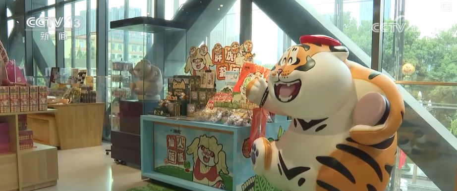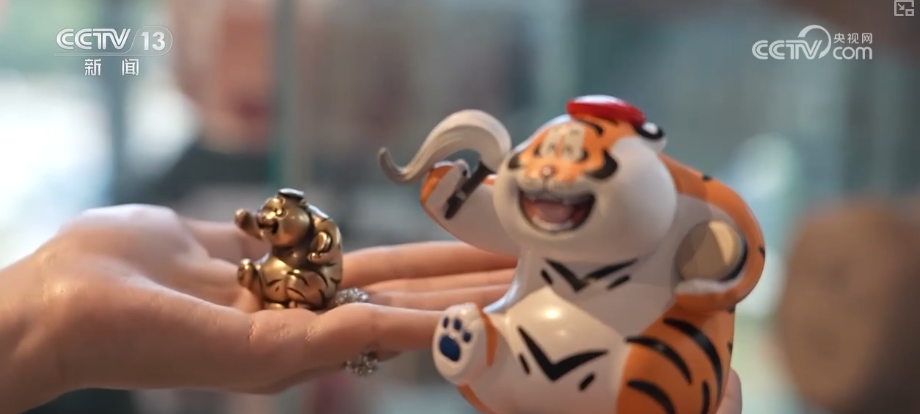 成都博物館文化創(chuàng)意產(chǎn)業(yè)部工作人員伍娜介紹,在整個(gè)文創(chuàng)行業(yè)發(fā)展起來后,文博行業(yè)也進(jìn)行了一些大膽的嘗試,包括和一些藝術(shù)家、非遺的傳承人,以及現(xiàn)在比較受年輕人歡迎的IP來進(jìn)行一些跨界的合作。他們想了一個(gè)創(chuàng)意點(diǎn),就是在“胖虎”的手上拿了很多具有成都代表性的元素,比如說茶館文化就拿了茶壺。