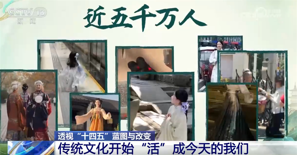 央視網(wǎng)消息:過去,我們在課本里背古詩、學歷史;今天,我們身著漢服走上街頭,在旅行打卡、短視頻創(chuàng)作中重新感受傳統(tǒng)。五千年的文化正在從書頁走向街頭,從展廳走進生活,成為我們?nèi)粘5囊徊糠??!笆奈濉钡奈迥?,讓文化真正“活”在了當下,也“活”進了我們的生活。