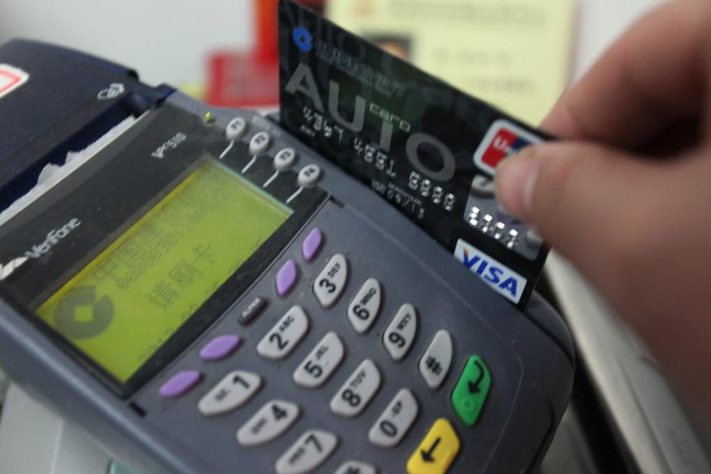 一名工作人員使用POS機(jī)為客戶刷卡。新華社發(fā)(梁志強(qiáng) 攝)