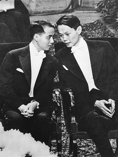 1957年瑞典斯德哥爾摩,諾貝爾物理學(xué)獎獲得者楊振寧和李政道。來源:清華大學(xué)官方微博
