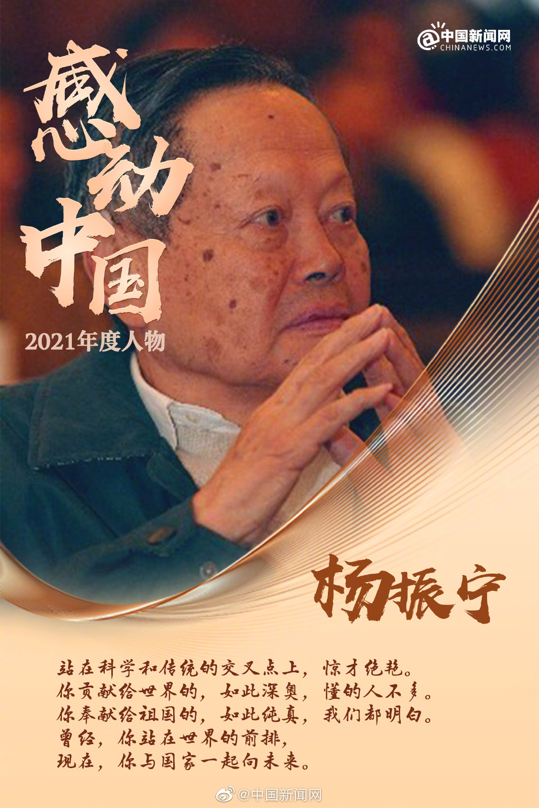 《感動中國》為楊振寧的頒獎辭這樣寫道:“你貢獻給世界的,如此深奧,懂的人不多。你奉獻給祖國的,如此純真,我們都明白?!?/p>