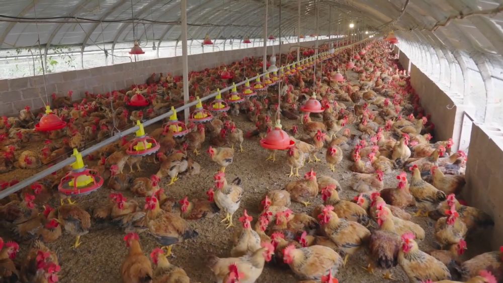 在富源縣的松林養(yǎng)雞場(chǎng)大棚,1200余只雞苗生長狀況良好。當(dāng)?shù)貙㈤e置的礦廠改造為現(xiàn)代化的養(yǎng)雞大棚,松林村委會(huì)周邊600余名村民,在家門口有了一份穩(wěn)定的收入。