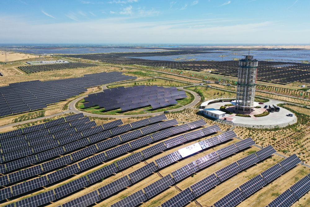 這是2025年7月30日拍攝的內(nèi)蒙古鄂爾多斯市達拉特旗光伏基地(無人機照片)。新華社記者 李志鵬 攝