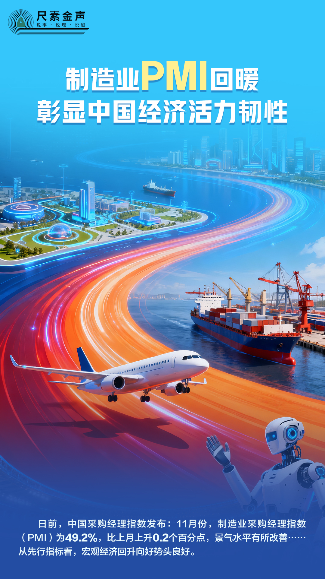 日前,中國采購經(jīng)理指數(shù)發(fā)布:11月份,制造業(yè)采購經(jīng)理指數(shù)(PMI)為49.2%,比上月上升0.2個百分點,景氣水平有所改善……從先行指標看,宏觀經(jīng)濟回升向好勢頭良好。
