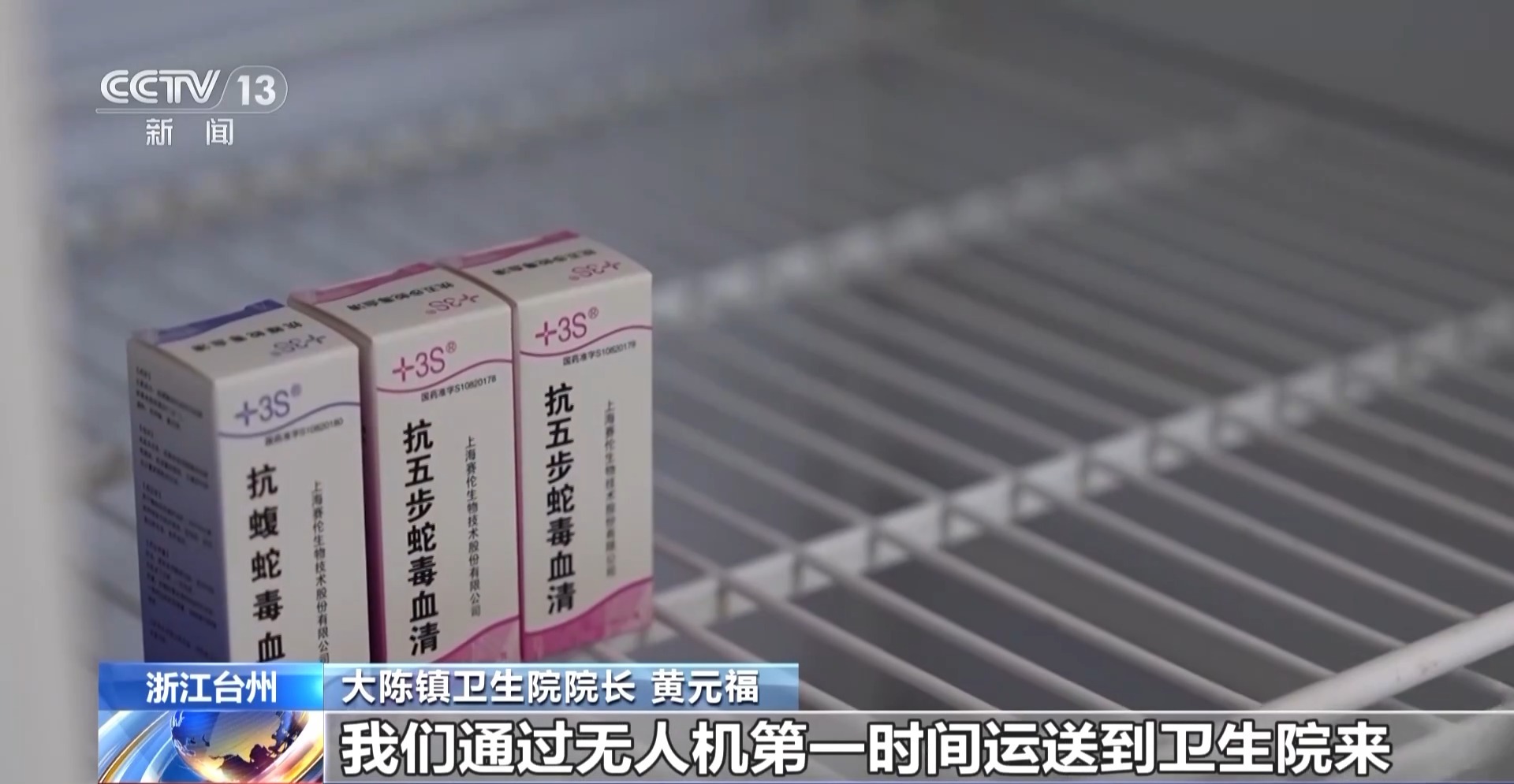 大陳鎮(zhèn)衛(wèi)生院院長(zhǎng) 黃元福:像這些蛇抗毒血清,還有一些疫苗,我們通過無人機(jī)第一時(shí)間運(yùn)送到衛(wèi)生院來,為緊急病人的救治爭(zhēng)取了寶貴時(shí)間。