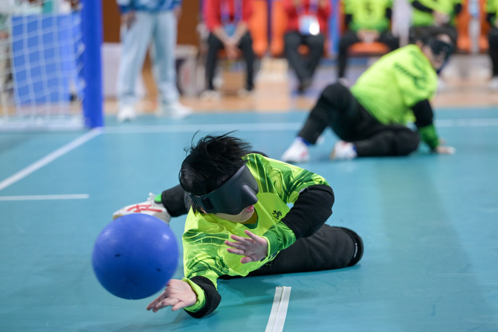 12月8日,在廣州舉行的全國(guó)第十二屆殘疾人運(yùn)動(dòng)會(huì)暨第九屆特殊奧林匹克運(yùn)動(dòng)會(huì)盲人門(mén)球項(xiàng)目女子組小組賽中,浙江隊(duì)13:3戰(zhàn)勝上海隊(duì)。新華社記者 胡智軒 攝